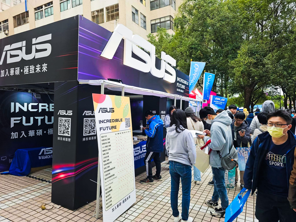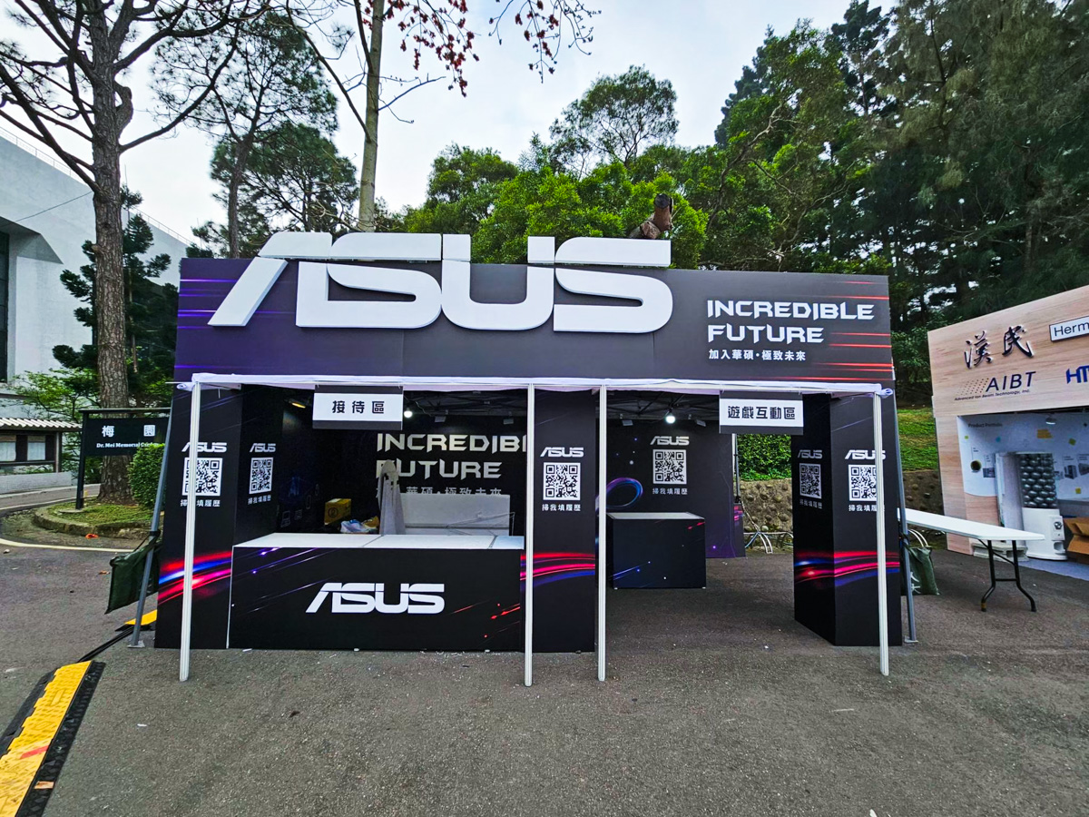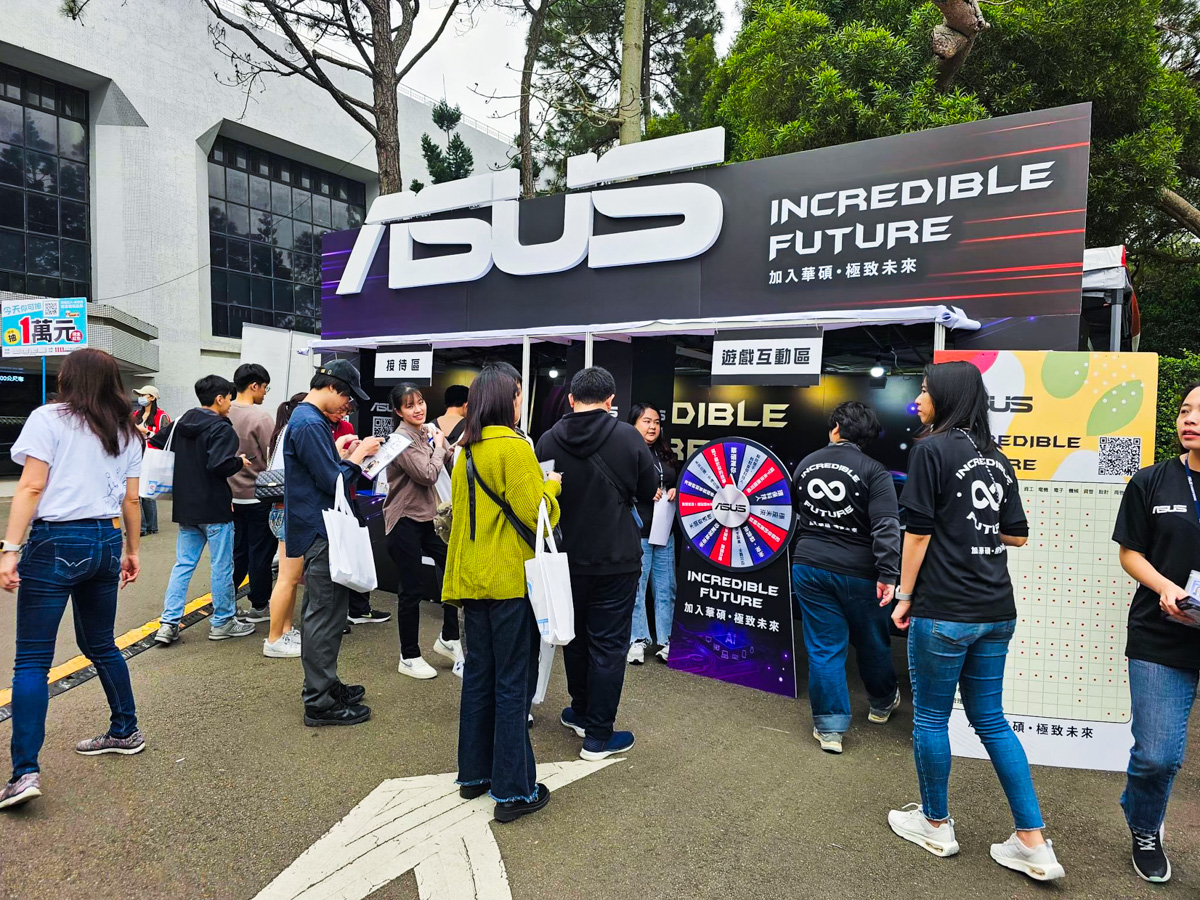 攤位外觀以 簡約低調卻不失質感的設計,搭配熠熠生輝的 ASUS 標誌,成功吸引眾多同學駐足參觀。透過多元的現場互動,讓同學們在輕鬆氛圍中深入認識 ASUS 的企業文化與職涯發展機會。