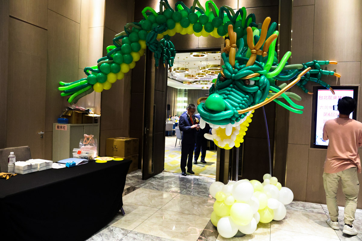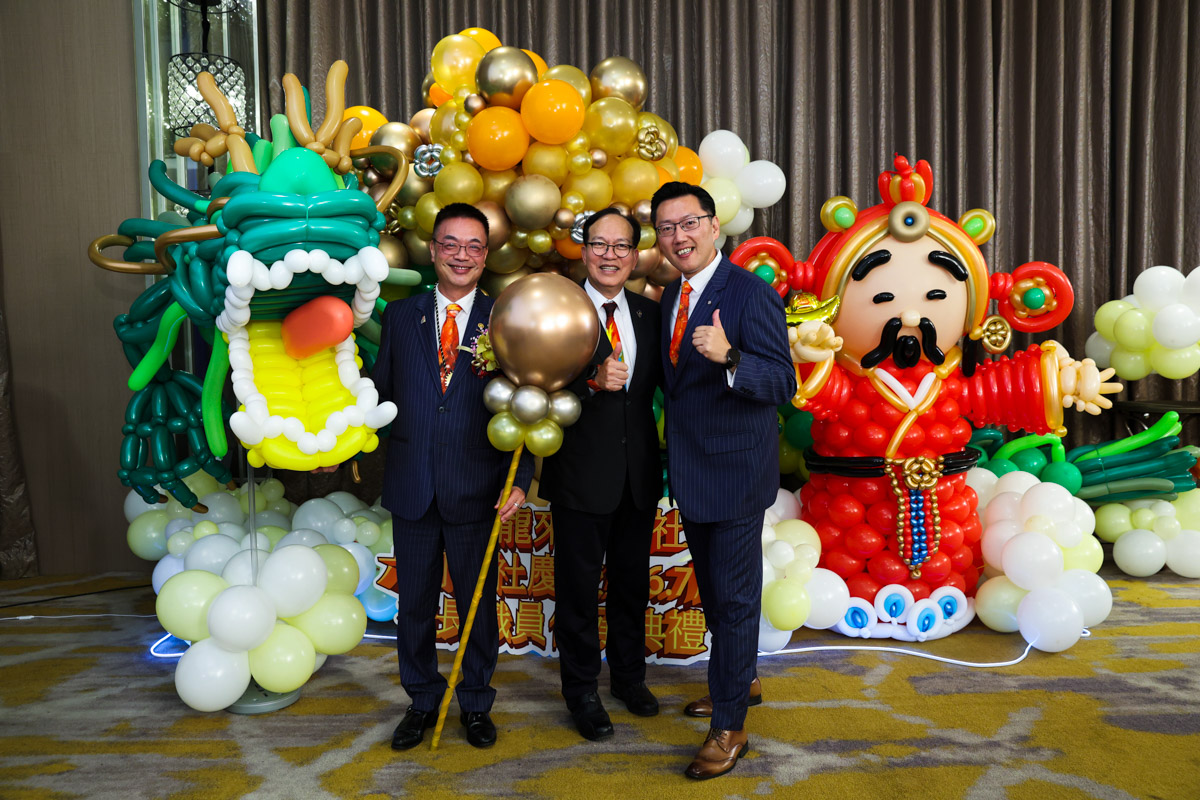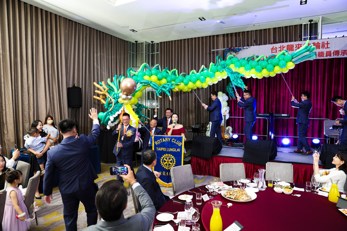 在活動的大廳正門口,一條以氣球精心打造的「龍」氣勢非凡矗立著,而這條氣球龍不僅象徵著龍年,更是象徵著「龍來扶輪社」精神的化身。在交接儀式的高潮時刻,新任社長和主要幹部們一同手持龍身,進行「舞龍」儀式,寓意新舊傳承、生生不息,也象徵領導人帶領社會前行、活力四射。